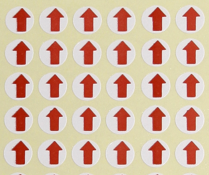Thông thường in tem dán mũi tên – tem số dùng trong ngành sản xuất may mặc sử dụng decal trắng, decal màu và đặc biết decal mũi tên để dán lỗi sản phẩm rất nhiều. Tem mũi tên dán lỗi sản phẩm dùng để dán trực tiếp sản phẩm bị lỗi trong quá trình kiểm duyệt trước khi đóng gói thành phẩm. Tùy theo từng công ty mà tem dán mũi tên, tem số sẽ có kích thước và màu sắc khác nhau.